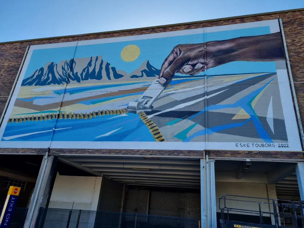 Two murals at Makers Landing, at the V&A Waterfront, aim to drive home the importance of water conversation and raise awareness about climate change - but they are also open to interpretation, say the artists.