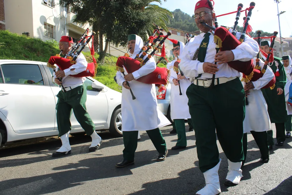 Moegamat Armien Lucas, the PRO of the Habibia Siddique Muslim Brigade, travelled all the way from Delft to participate in the cultural customs and play the bagpipes.
