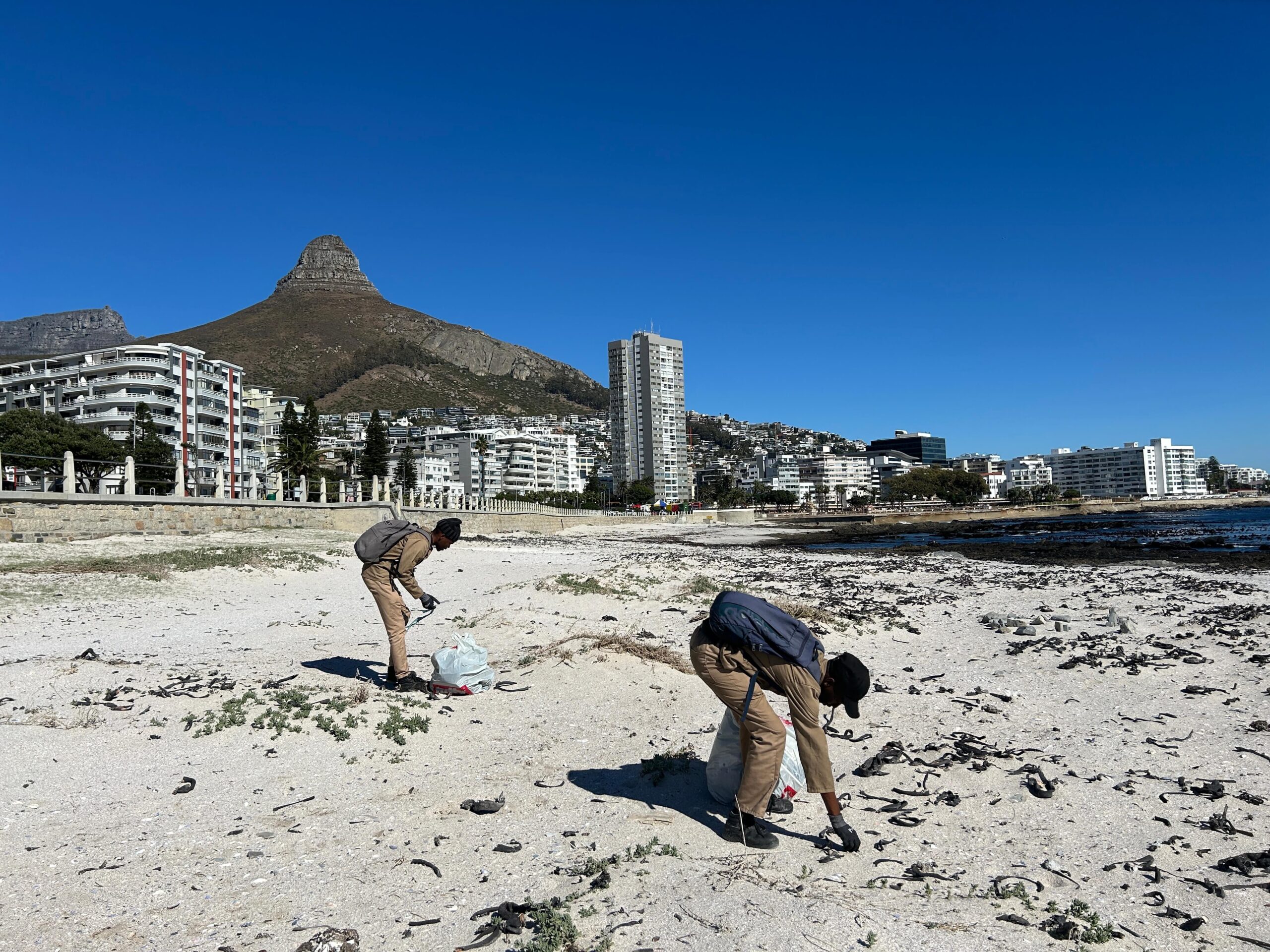 She said Pristine Earth Collective's role is essential since they will empty the nets and have two individuals cleaning the Sea Point beach four days a week.
