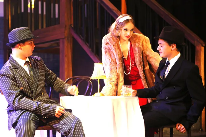 From left are Tariq Eskinazi (Fat Sam) , Ophelia Ross (Tallulah) and Samuel Yazdanpanahi (Bugsy) in the Bugsy Malone production.
