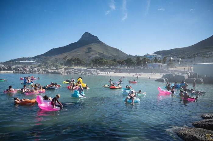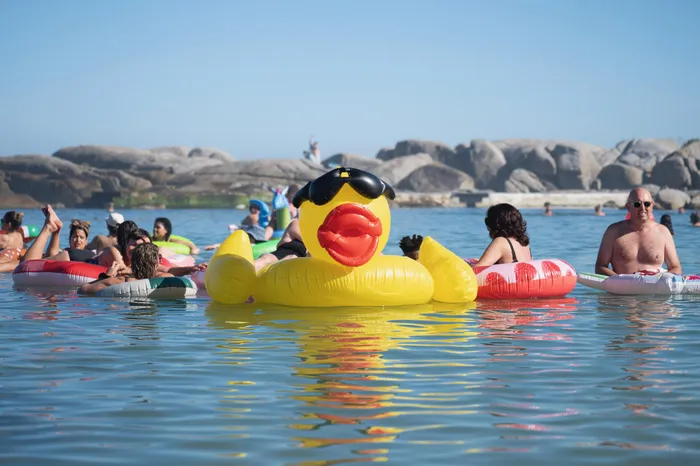 Pool party Cape Town goers enjoyed floating in Camps Bay's tidal pool on Sunday, December 7.