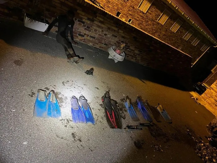 Illegal abalone and diving equipment seized during a TMNP operation at Smitswinkel Bay.