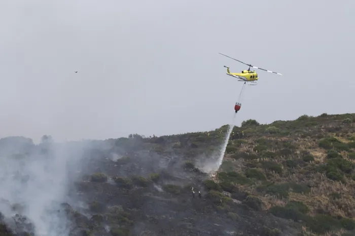 Two helicopters are waterbombing slopes ablaze between Hout Bay and Camps Bay.