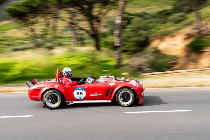 Heinrich du Preez, in his1985 AC Cobra during last week's hill climb on Table Mountain.