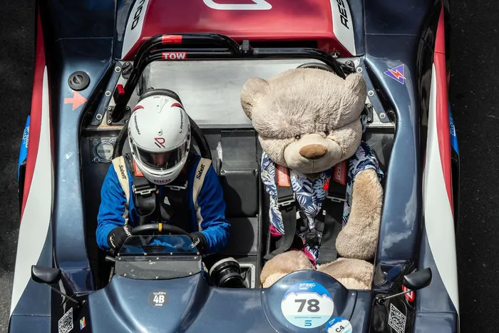 Lyle Ramsay and his "co-pilot" in the cockpit of his 2017 Harper T6 during last week's Speed Classic hill climb on Table Mountain